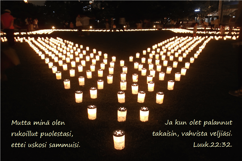 Aikoinaan perheellämme oli tapana käydä jouluaattona omaisten haudoilla viemässä kynttilöitä. Se sopi hyvin tehdä samalla, kun poikkesimme aattohartauteen. Sillä tavalla virityimme joulun tunnelmaan. Aikansa kutakin. Tapa on jäänyt vähitellen pois. Mutta usein, kun menimme hautausmaalle sytyttämään kynttilöitä, oli tuulinen ilma. Tulitikku ehti sammua ennen kuin kynttilä syttyi. Niinpä pyysin vaimoa tulemaan tuulensuojaksi. Silti saattoi kulua monta …